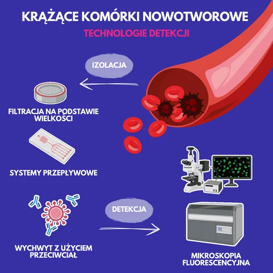 Krążące komórki nowotworowe (ang., circulating tumor cells, CTCs) to źródło niezwykle bogatych informacji o biologii nowotworu. Ich obecność i liczba we krwi może świadczyć o aktywnej chorobie lub ryzyku przerzutów oraz korelować z rokowaniem i odpowiedzią na leczenie. CTC wykazują różnorodne fenotypy, odzwierciedlające heterogenność guza, a ponadto mogą wchodzić w interakcje z innymi komórkami krwi, co może sprzyjać ich przeżyciu i rozsiewowi. Analiza ich morfologii - np. wielkości jądra, kształtu komórki czy stosunku cytoplazmy do jądra – może poprawić klasyfikację CTCs. Dzięki temu CTC mogą pełnić rolę cennych biomarkerów oraz źródła wiedzy o dynamice i rozprzestrzenianiu się nowotworu.
